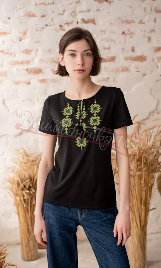 Чорна футболка з вишивкою 5143