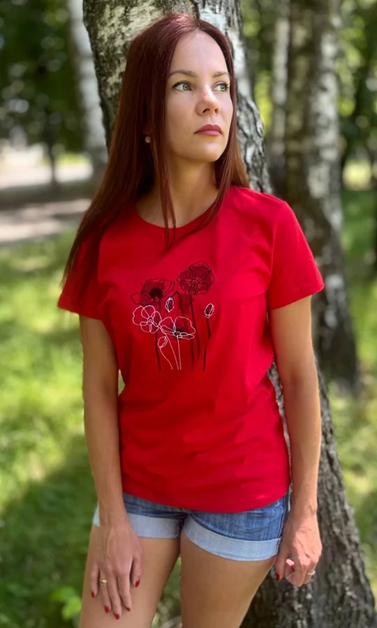Футболка жіноча з маками 3021