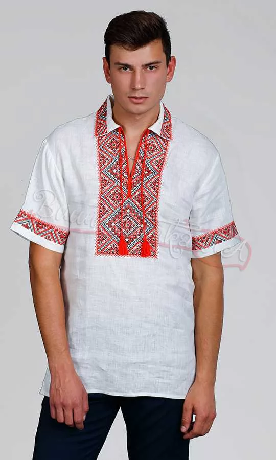 Червона вишиванка з коміром 3822