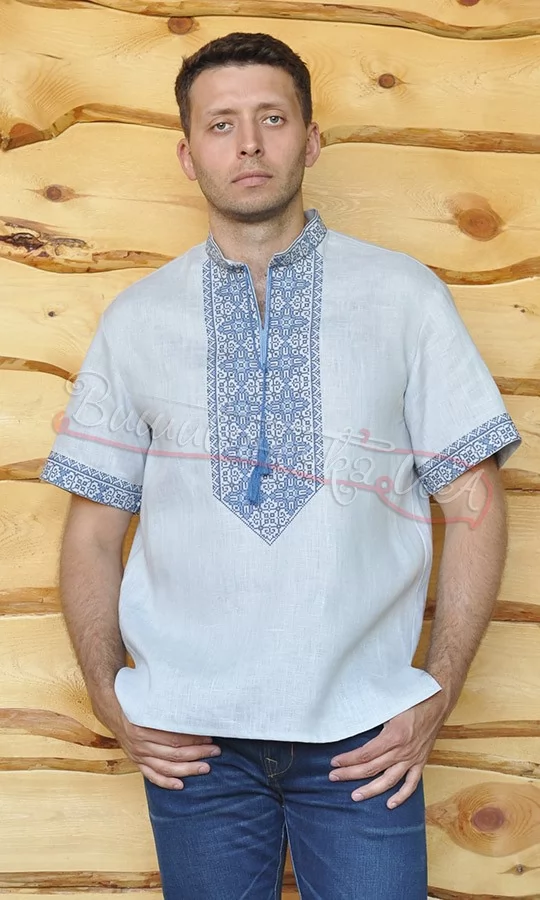 Мужская вышиванка с коротким рукавом из льна М27к