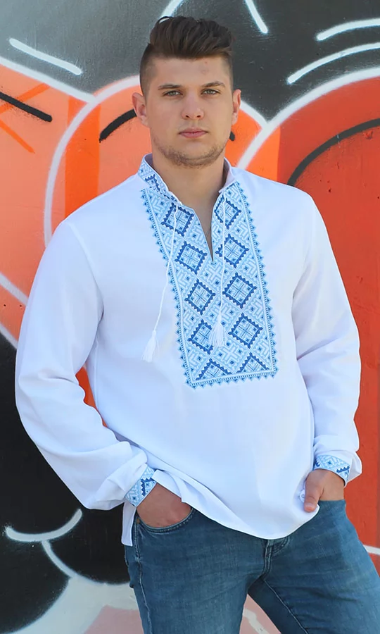 Мужская вышиванка с синим узором 3312