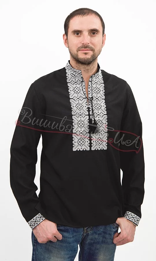 Чорна чоловіча сорочка з білою вишивкою 8936