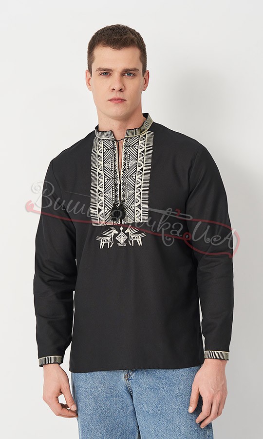 Льняная рубашка с пат-манжетом 319-10+
