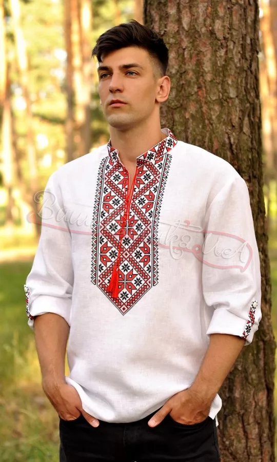 Традиционная вышиванка с красно-черной вышивкой М182