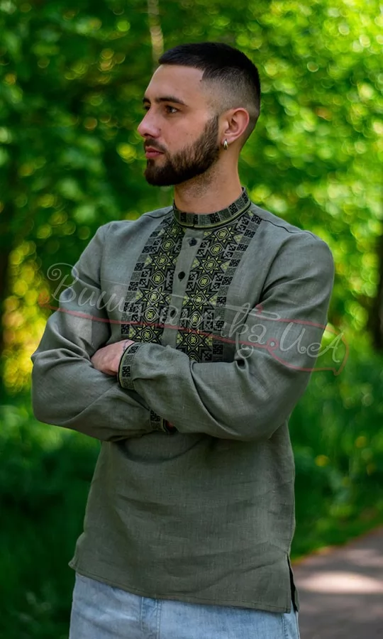 Вышиванка цвета хаки 4240