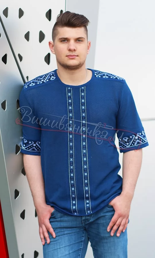 Джемпер вязаный синего цвета с орнаментом 5306