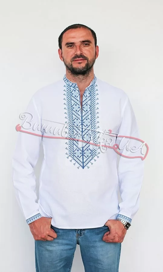 Мужская вышиванка с голубым узором 2076-б