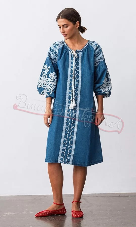 Платье из джинса с кружевом 901475