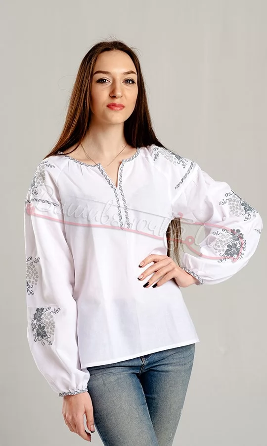 Женская вышиванка с нежным серым узором 548-1