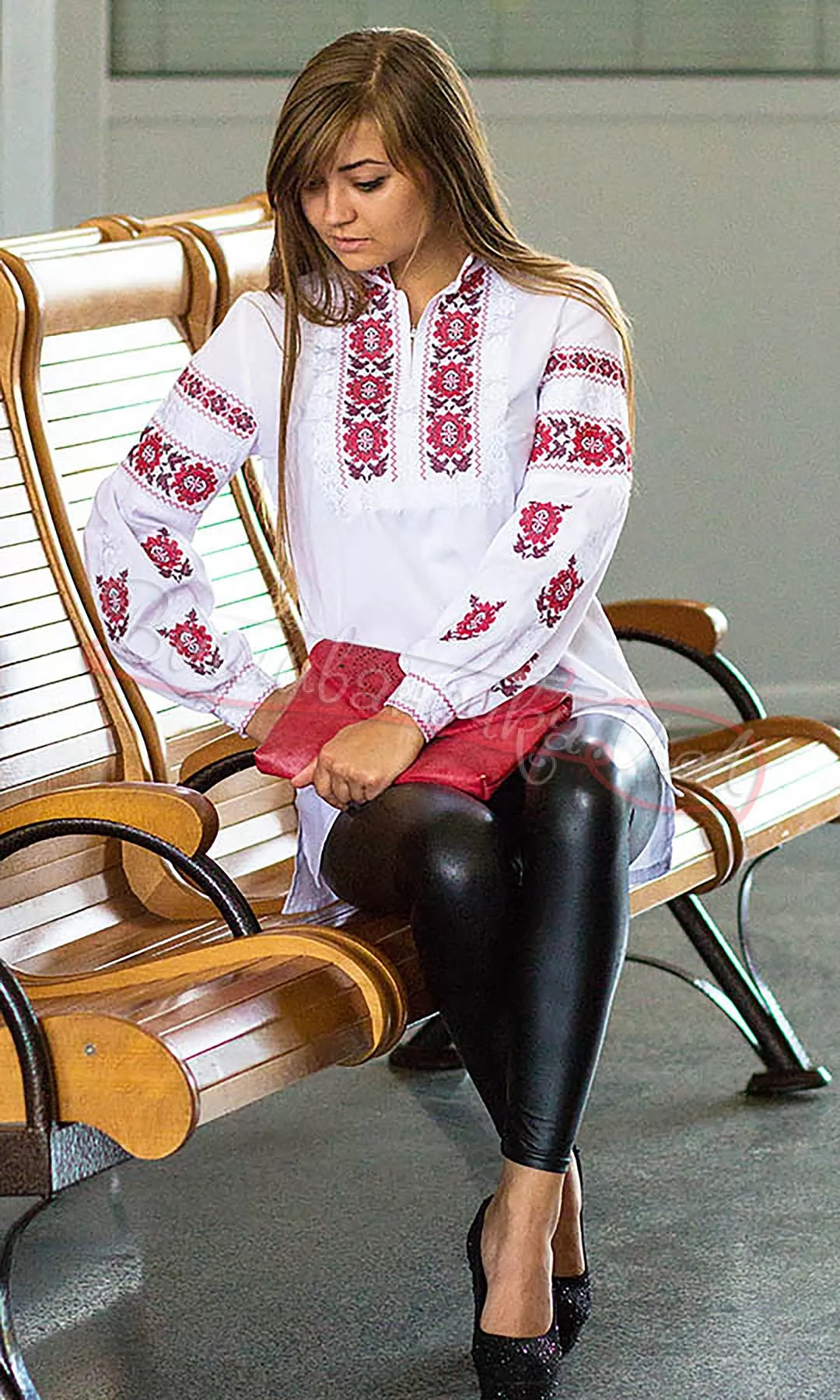 Эффектная вышиванка свободного кроя – необычайный элемент аутентичной одежды в Вашем гардеробе в современном видении. Вышивка крестиком максимально приближена к ручной. В модели использован орнамент цветов роз, которые в некоторых регионах олицетворяют представление наших предков о системе Вселенной. Цветы же в растительных орнаментах означали непрерывность движения солнца и обновления. Крой позволяет чувствовать себя свободно и комфортно: по бокам модели созданы разрезы, пышные рукава, воротник-стойка и разрез на груди.