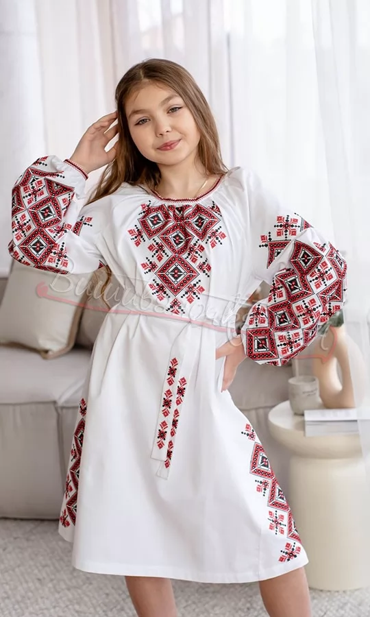 Белое вышитое платье для девочки 4361