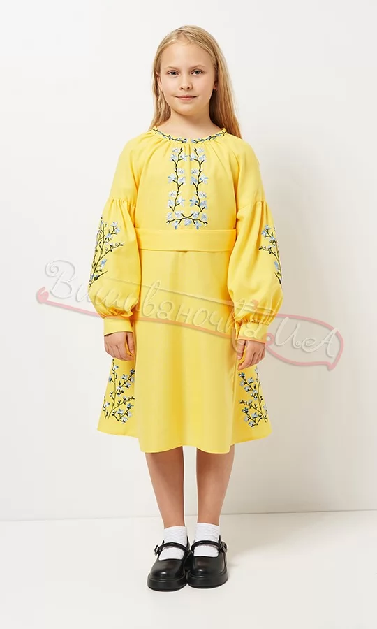 Желтое платье для девочки с вышивкой 829-8