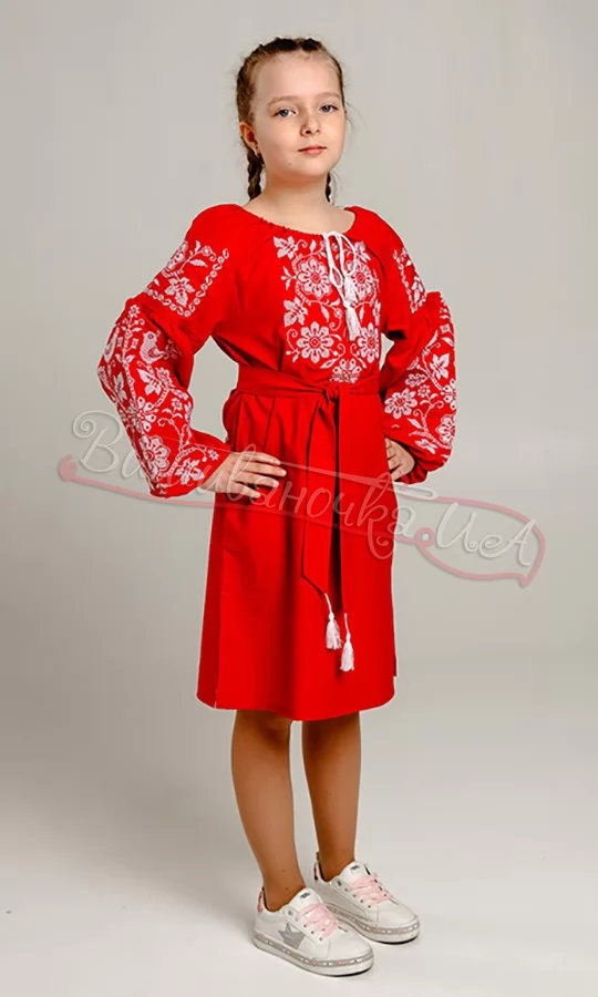 Красное вышитое платье для девочки 850-8