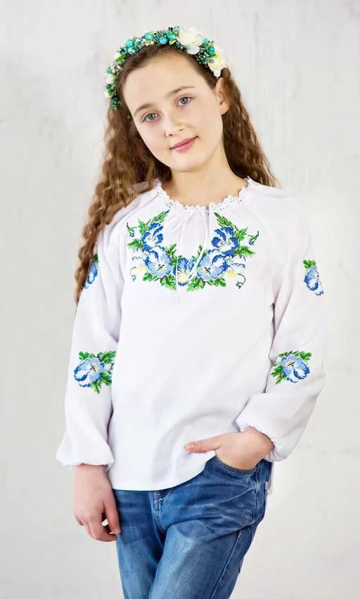 Вышиванка для девочки с вышивкой цветов 9946
