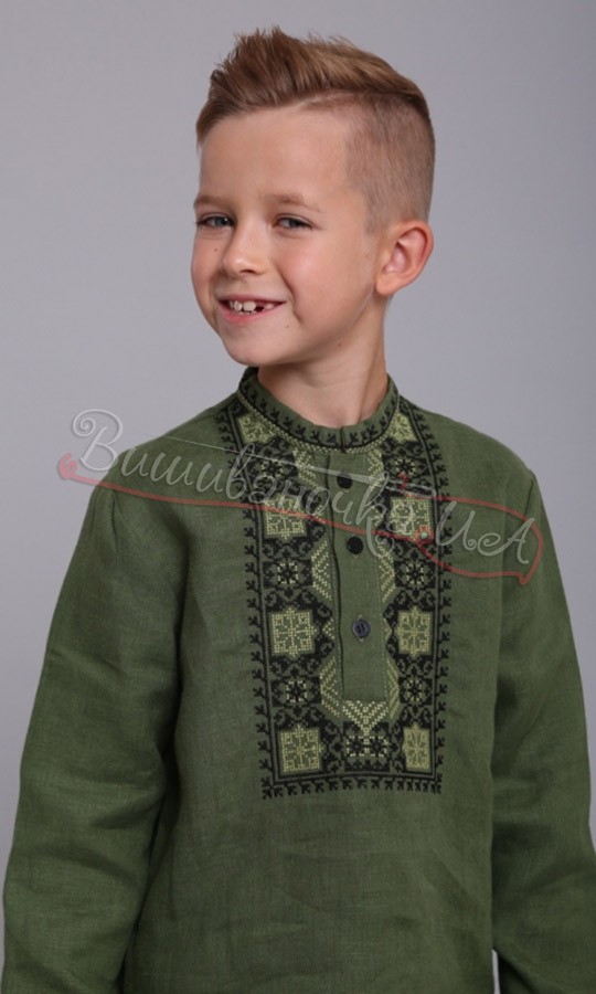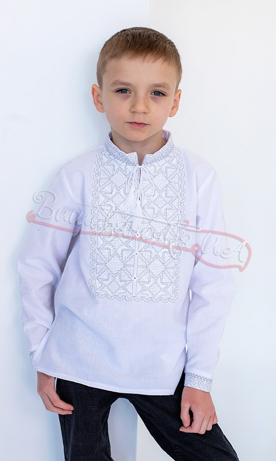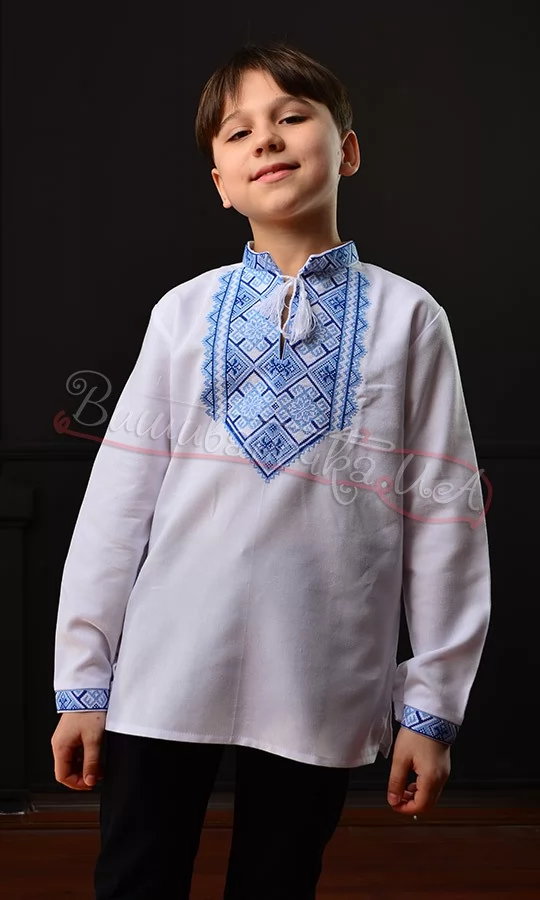 Детская вышиванка с голубым узором 714-3
