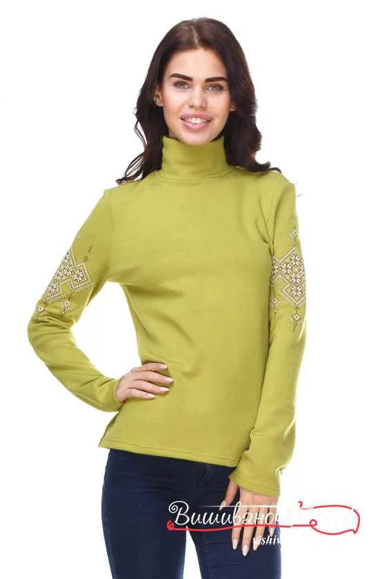 Гольф с вышивкой салатовый, трикотаж 5112