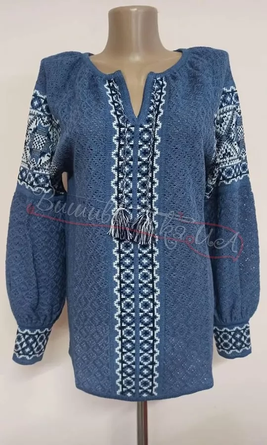 Синяя вязаная вышиванка 5385