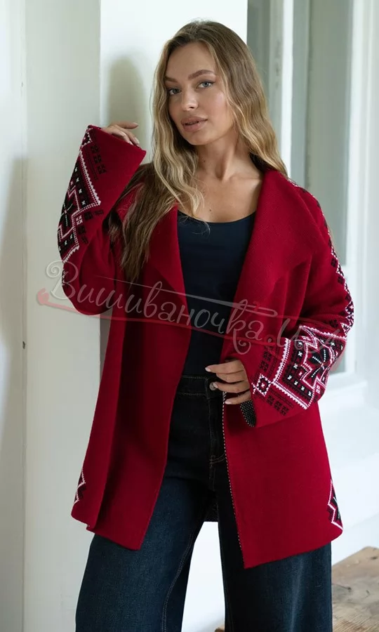 Вязаный жакет вишневого цвета 4143