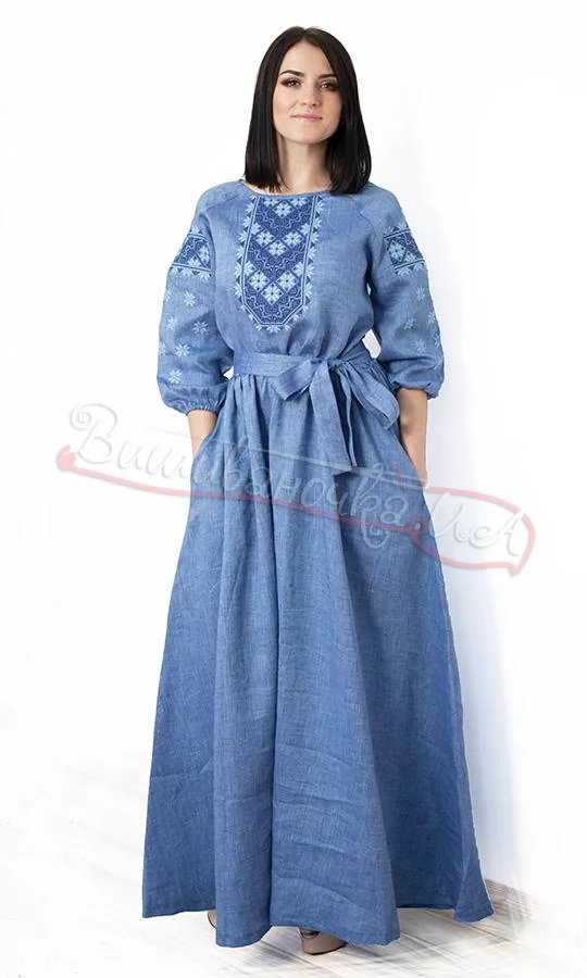 Долгое льняное платье с вышивкой 416-9