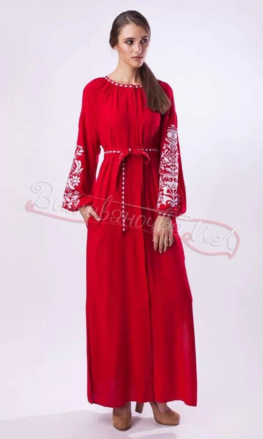 Красное длинное платье с вышивкой 1525