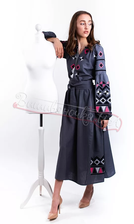 Платье вышитое из льна ОК07
