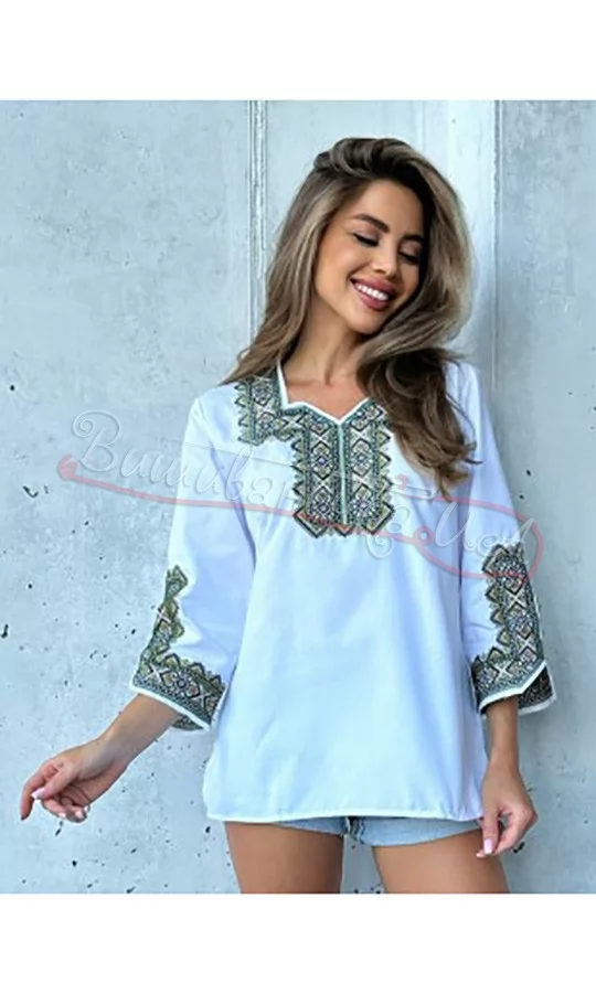 Жіноча блуза з зеленою вишивкою 2048