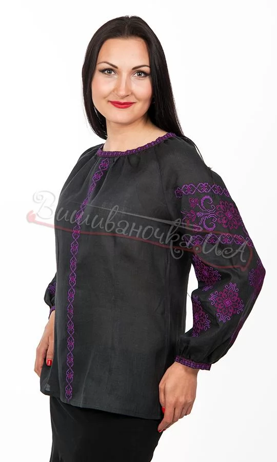 Женская вышиванка из черного льна 7095