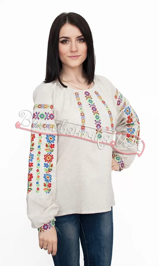 Вышиванка с цветами на сером полотне 523-2