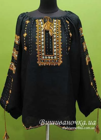 Жіноча вишиванка на чорному льоні ЖчлД013