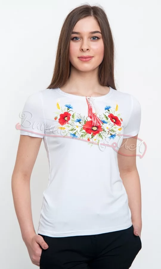 Футболка з маками білого кольору 50123