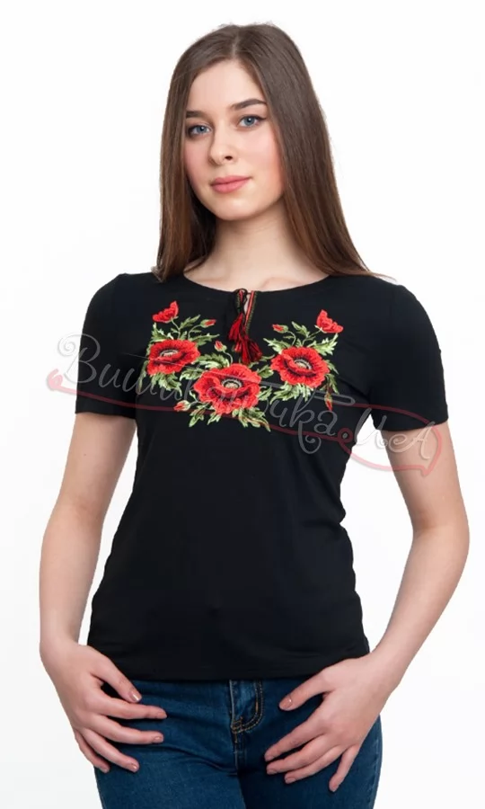 Жіноча футболка з вишивкою маків 50120