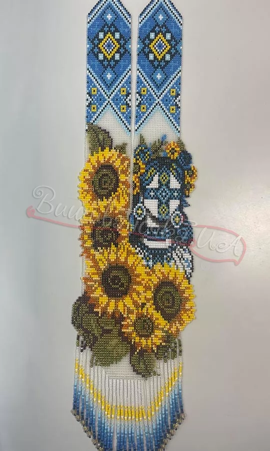 Гердан за схемою Ольги Сенюк. Довжина - 47 см + поясок на шиї. Ширина - 12 см. Аксесуар ручної роботи в патріотичному етно-стилі.