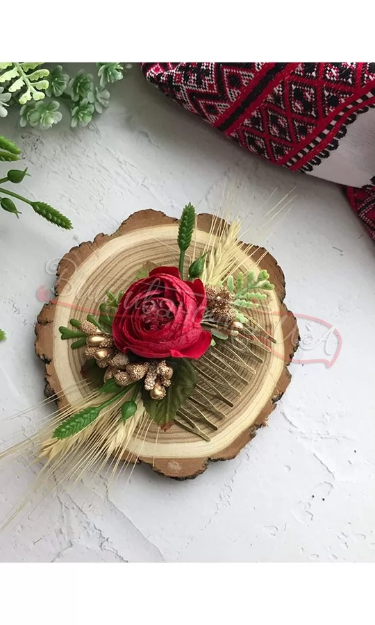 Гребінець-заколка з квітами чудово доповнить святкову зачіску. Аксесуар виглядає дуже вишукано та стильно.