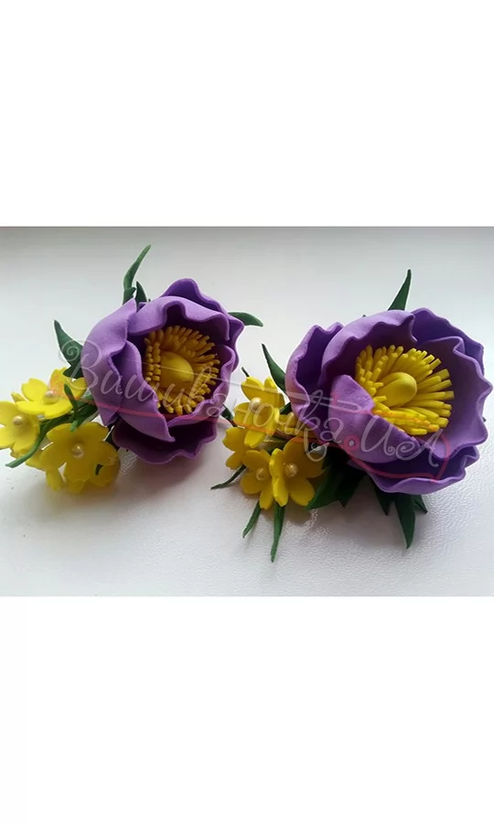 Заколка з квітів ручної роботи виглядає неймовірно яскравою та святковою. Поєднання жовтогарячого та фіолетового кольорів є надзвичайно гармонійним та вдалим. Ціна вказана за 1 шт.