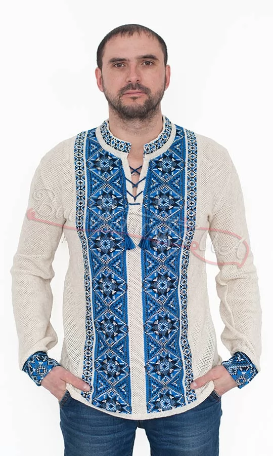 Чоловіча вязана вишиванка, льон 5259