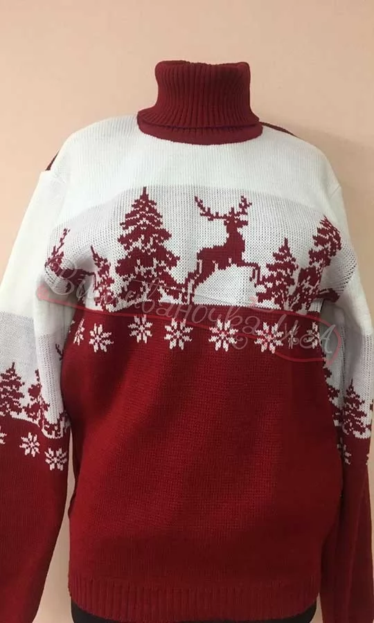 Новорічна чоловіча в'язана кофта з гольфовим коміром. Теплий, зручний та водночас стильний светр, який зігріє в морозні святкові вечори.