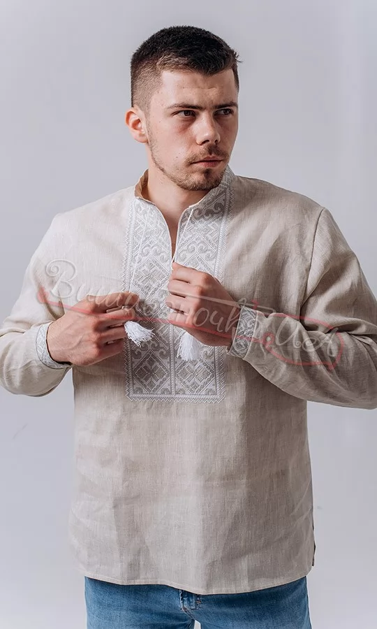 Чоловіча вишиванка на сірому льоні 341-6+