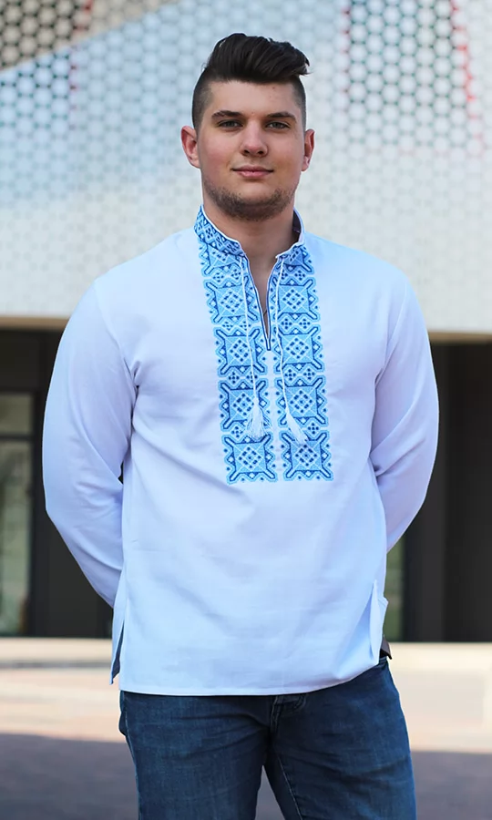 Чоловіча вишиванка з червоним або синім кольором 3349