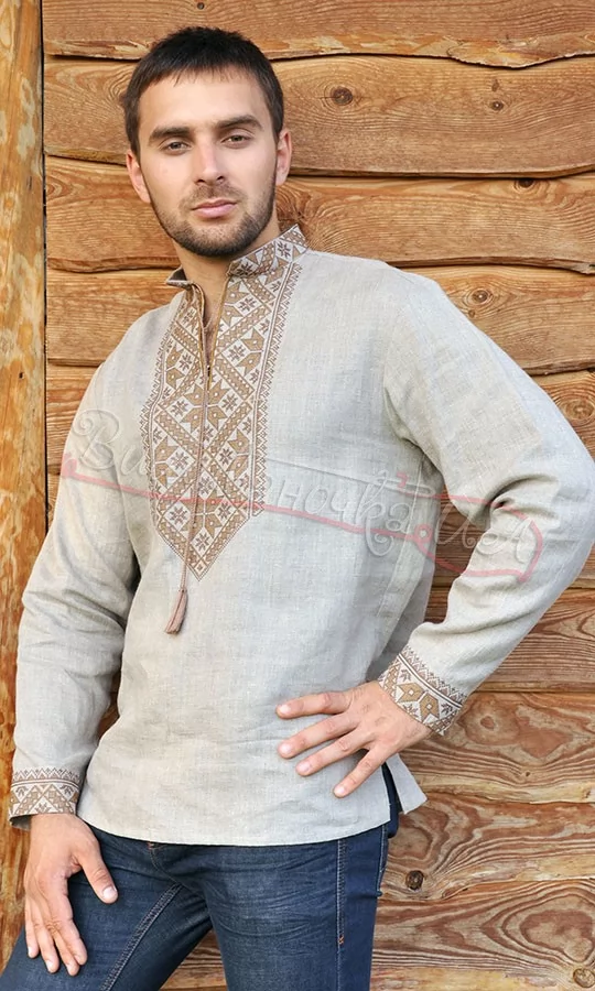 Чоловіча вишиванка з натурального льону М183 - фото vishivano4ka.com.ua