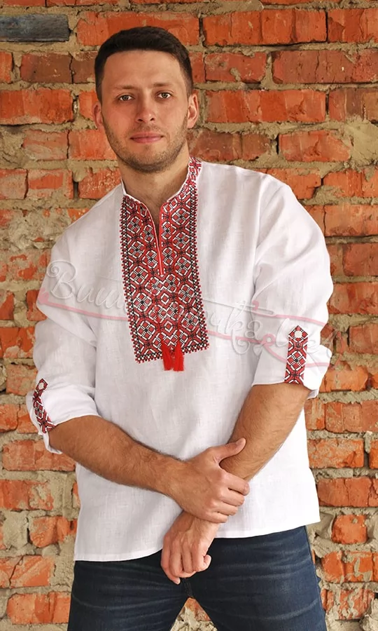 Сорочка з червоно-чорною вишивкою з довгим рукавом М04