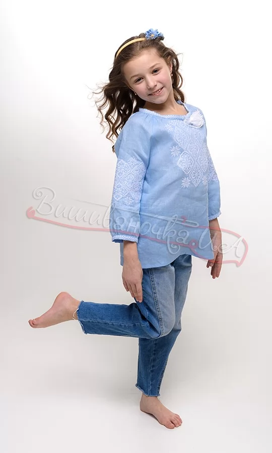 Вишиванка для дівчинки з блакитного льону 944-6