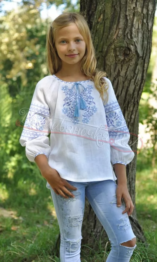 Вишиванка з блакитною вишивкою для дівчинки Д032 - фото vishivano4ka.com.ua
