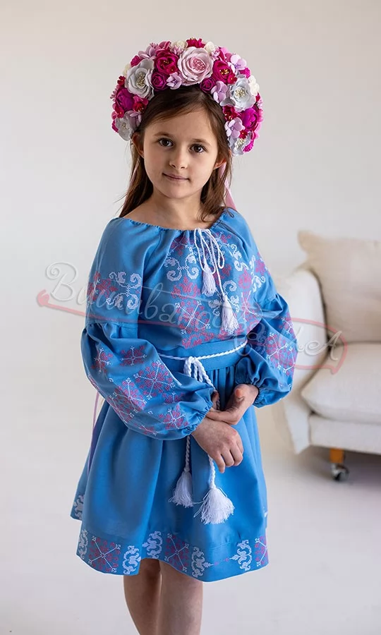 Блакитна сукня для дівчинки 854-11 - фото 1 vishivano4ka.com.ua
