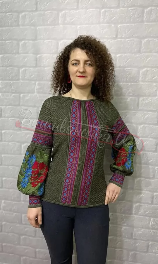 Вязана жіноча блуза з яскравими рукавами 5881