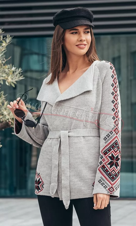 Вязаний сірий жакет в етно-стилі 4148