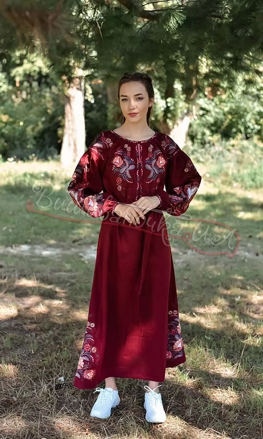 Бордова сукня з вишивкою 4607