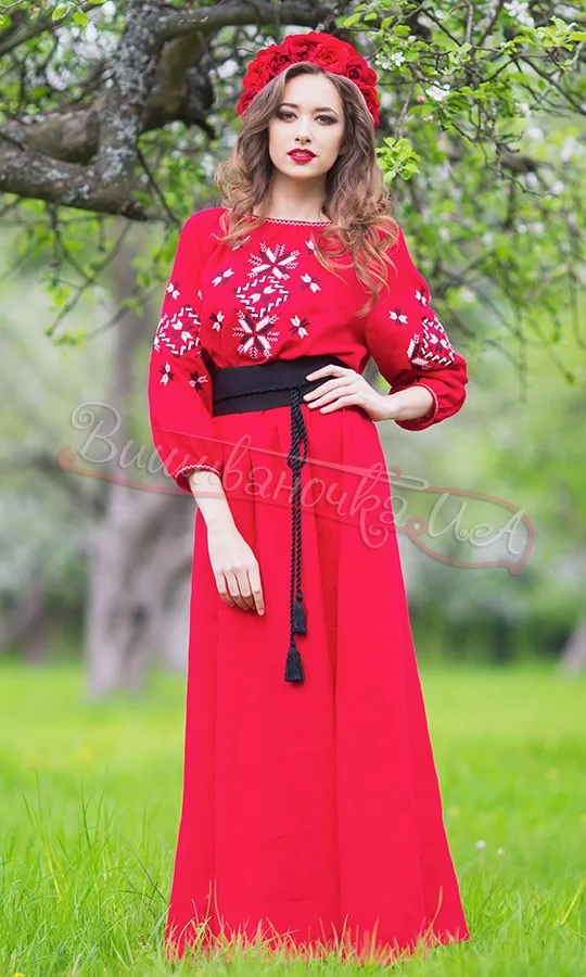 Червоне довге плаття з льону П26 (знято з виробництва)