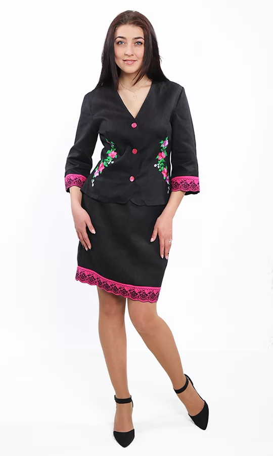 Черный костюм с вышивкой 7228