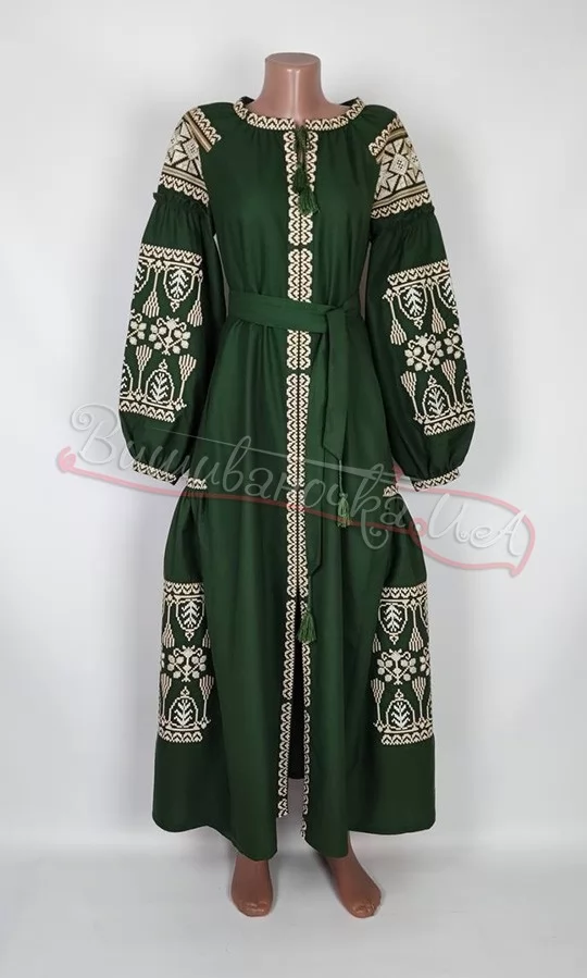 Довга жіноча сукня зеленого кольору 451-11