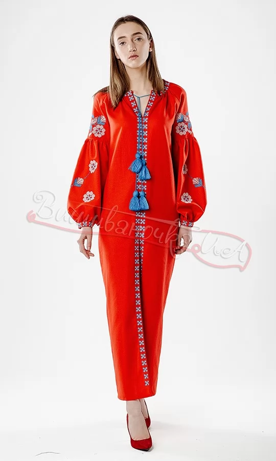 Довге насичене плаття з допотканого полотна НК01